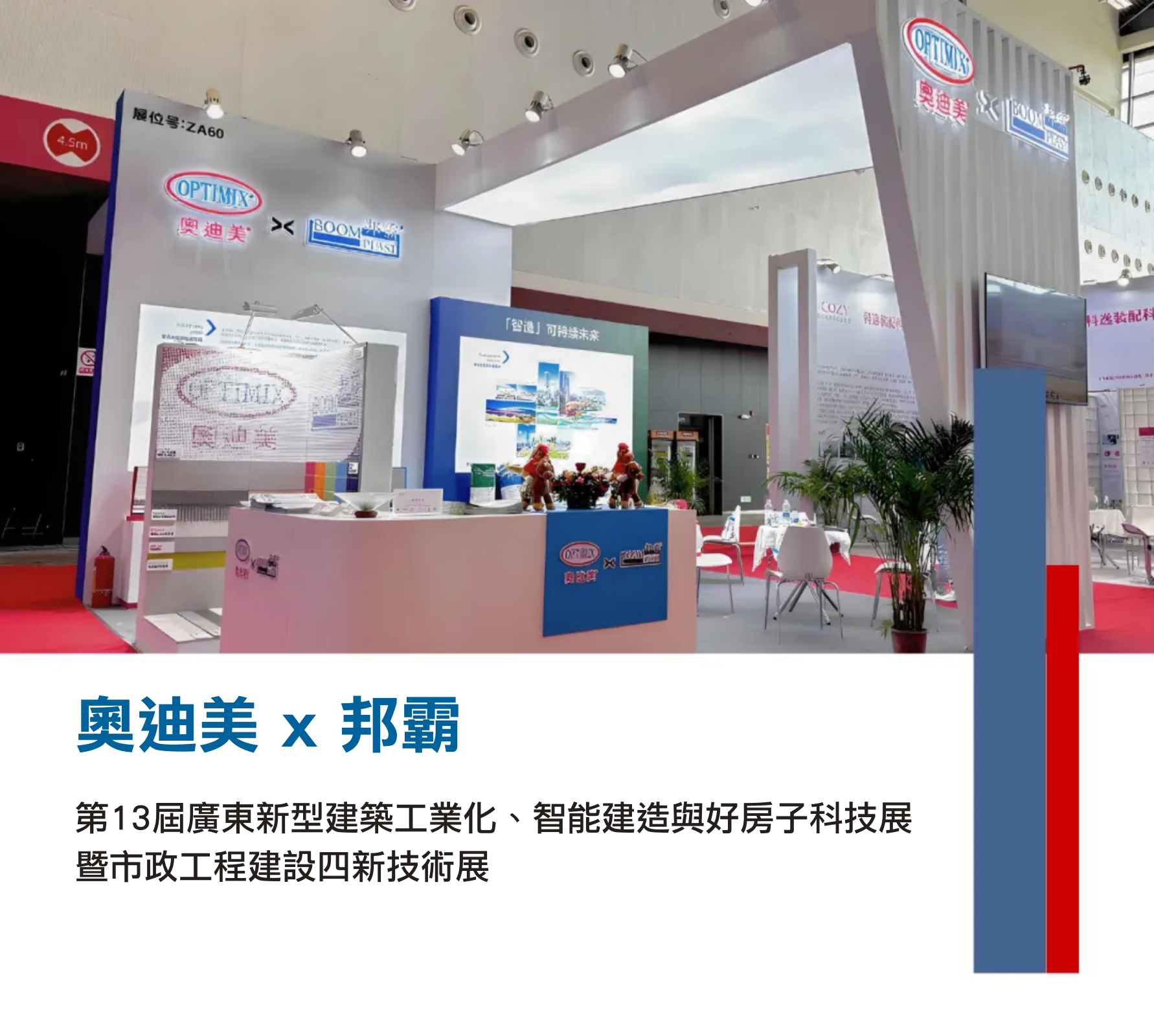 奧迪美集團於8月初參與了廣州舉行的建築業界的年度盛事 —— 「第13屆廣東新型建築工業化、智能建造與好房子科技展」。奧迪美在展會示範了領先的特種乾粉砂漿解決方案,並再次重申品牌致力於推動建築行業未來發展的堅定承諾。